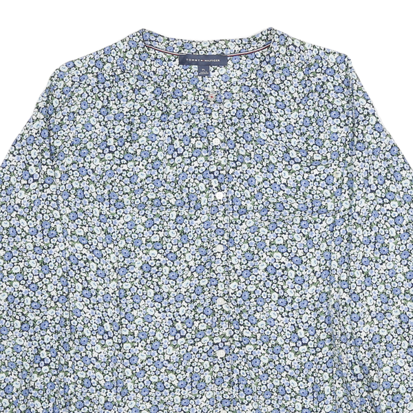 TOMMY HILFIGER Womens Blue & White Floral Blouse Long Sleeve Round Neck L Cotton