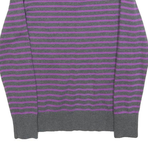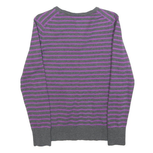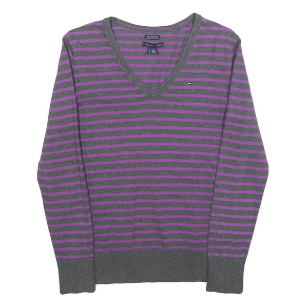 TOMMY HILFIGER Womens Grey & Purple Striped Patterned V-Neck Basic Knit Jumper M