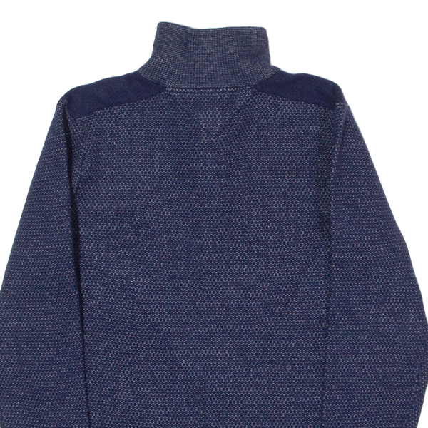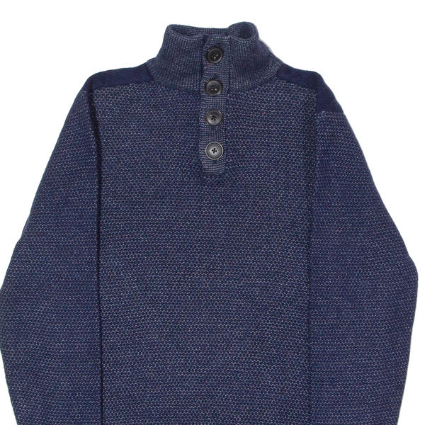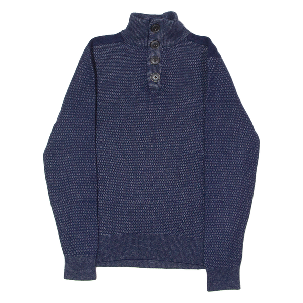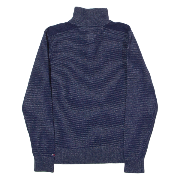 TOMMY HILFIGER Mens Jumper Blue Button Neck Tight Knit Wool S