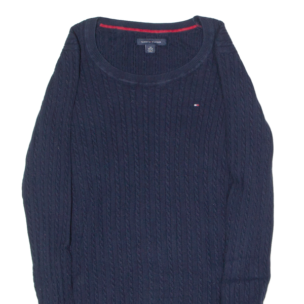 TOMMY HILFIGER Womens Jumper Blue Crew Neck Cable Knit XS