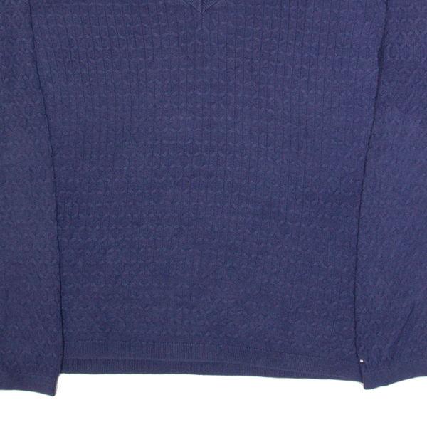 TOMMY HILFIGER Womens Jumper Blue V-Neck Cable Knit L
