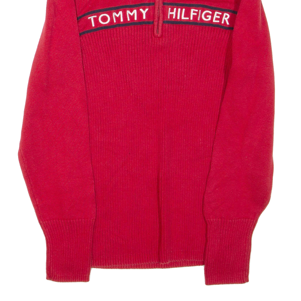 TOMMY HILFIGER Womens Jumper Red 1/4 Zip Tight Knit L