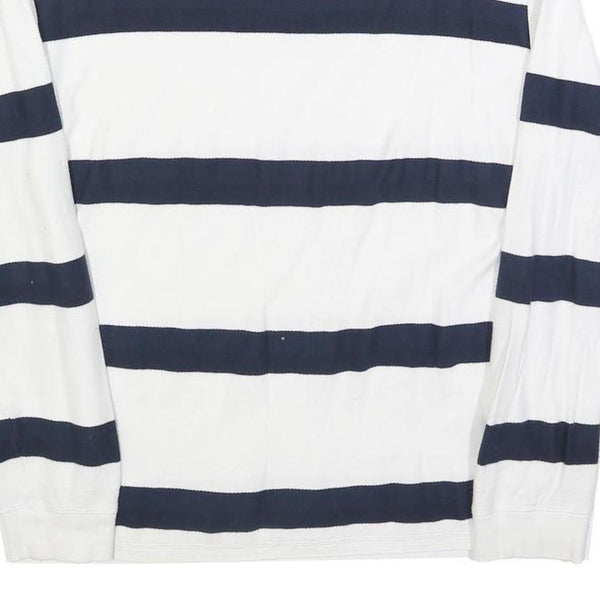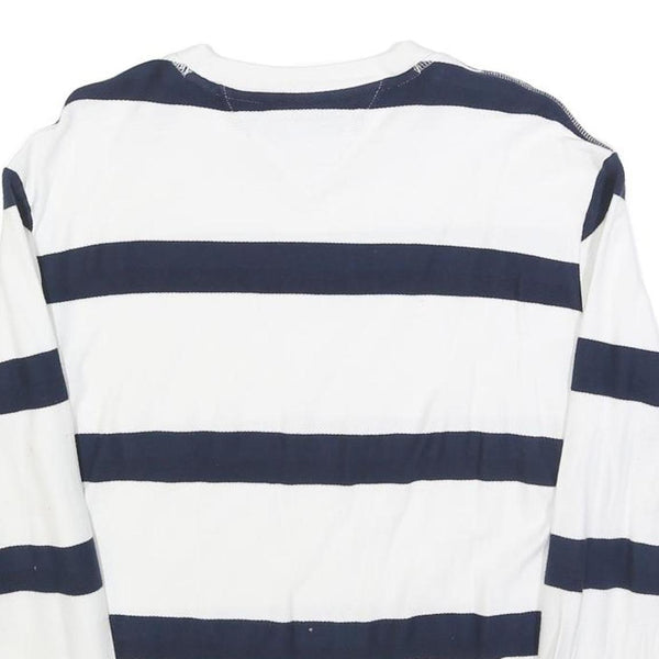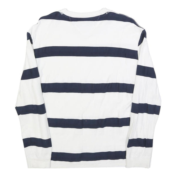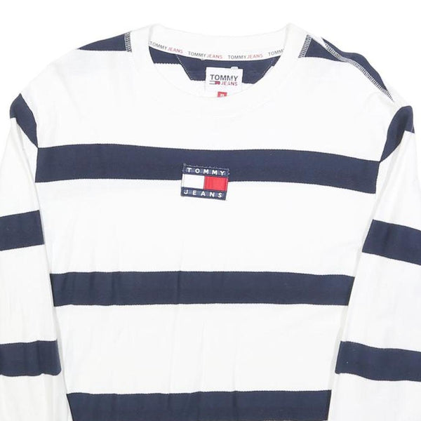 TOMMY JEANS Mens White & Navy Stripe Plain Cotton Blend Crew Neck Basic Knit