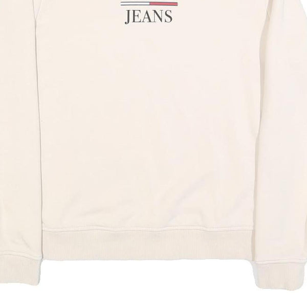 TOMMY JEANS Womens Cream Sweatshirt Crew Neck S Cotton Blend Logo Print