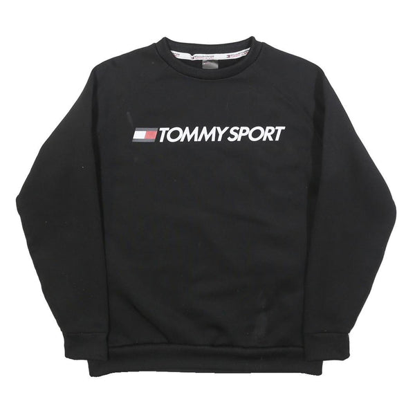 TOMMY SPORT Mens Black Crew Neck S Polyester Blend Sweatshirt Logo Print