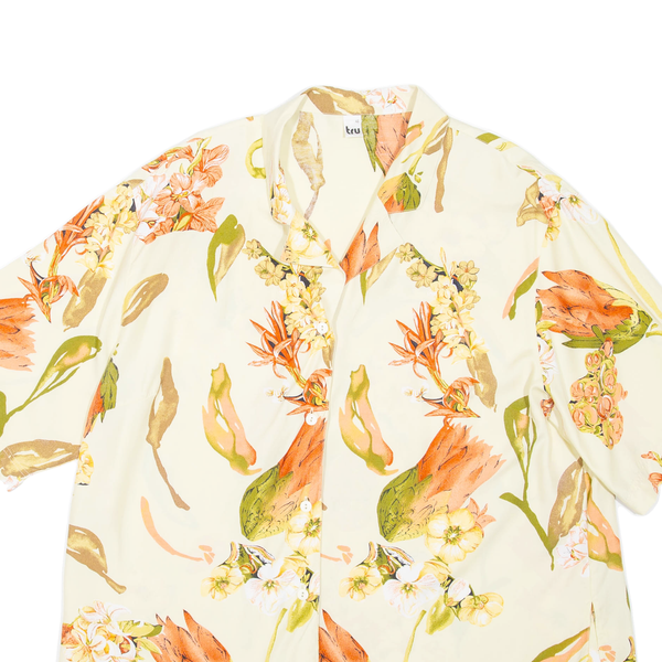 TRU Womens Printed Shirt Green Collared Floral UK 20