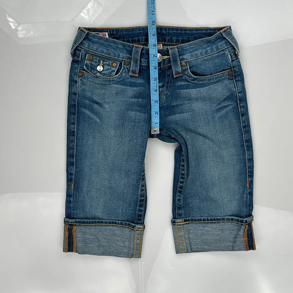 True Religion Denim Shorts, fit a US size 2 with a 28″ Waist.