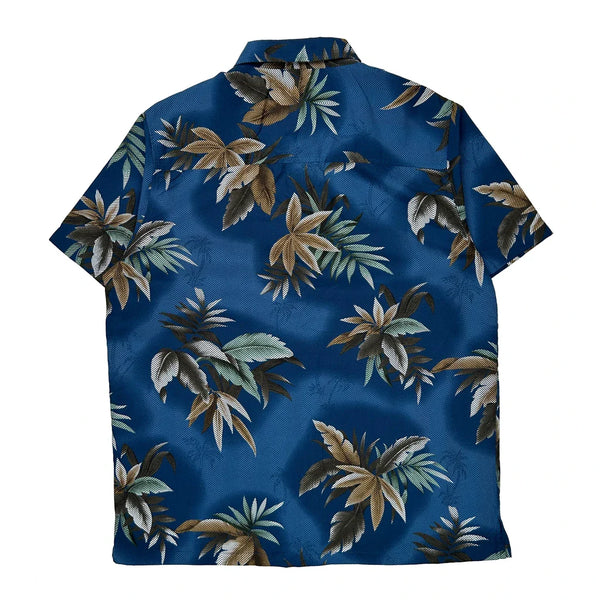 Blue Hawaiian Shirt With Floral Pattern