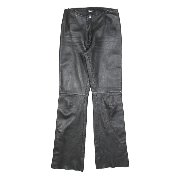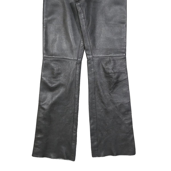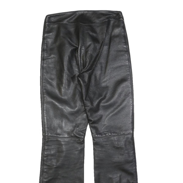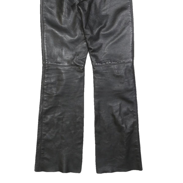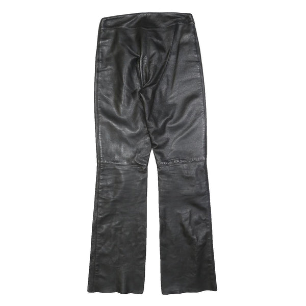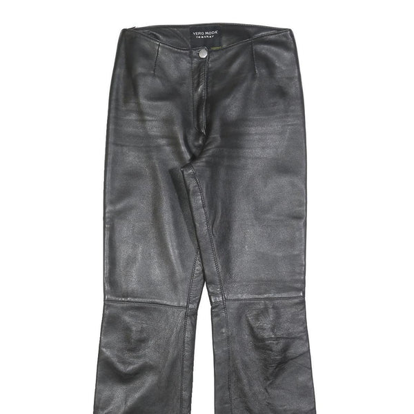 VERO MODA Womens Leather Black Regular Flared Trousers W26 L32 Zip Closure