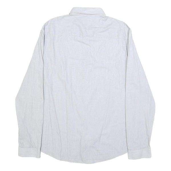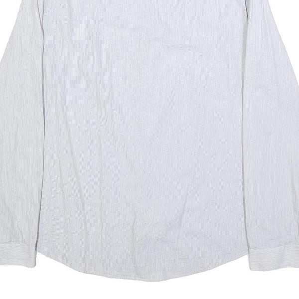 VERSACE Mens White & Grey Stripe Cotton Blend Shirt M Classic Fit Long Sleeve