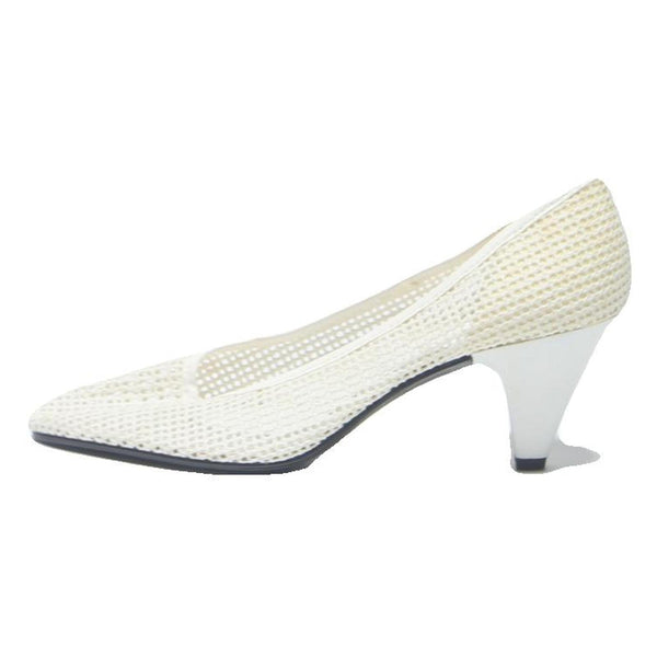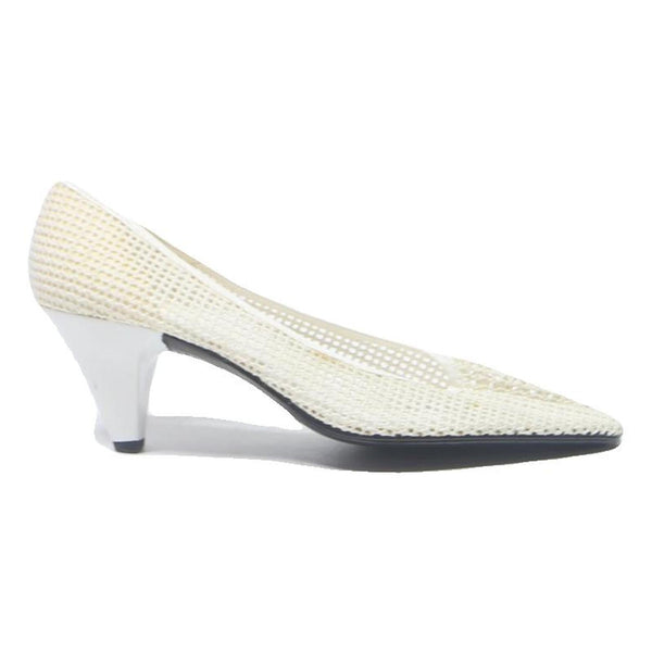 These VOGELE women's heels feature a crisp white synthetic upper crafted in a textured, perforated design that adds subtle visual interest while ensuring breathability. The pointed toe enhances the sophisticated silhouette, making them perfect for both formal and smart casual occasions.