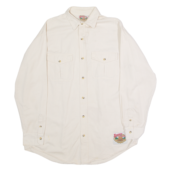WINSTON SELECT TRADING CO Mens Plain Shirt Cream 90s Long Sleeve L
