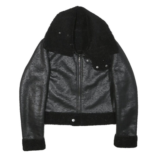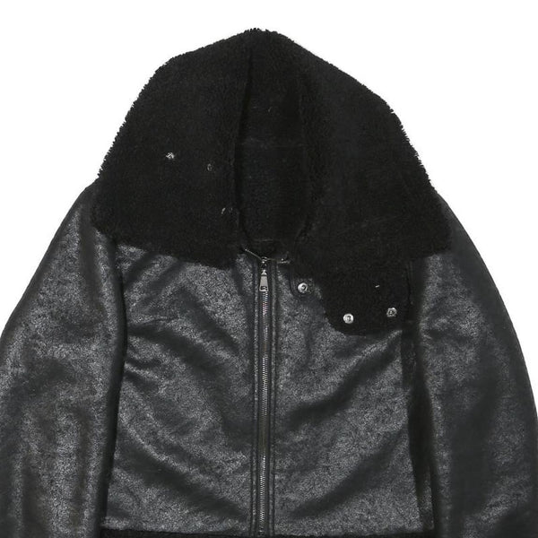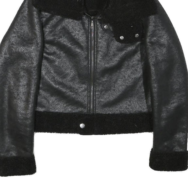 Womens Black Faux Shearling Collar Jacket XS Polyester Blend Zip Coat Outerwear