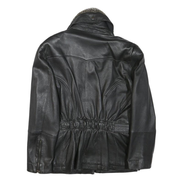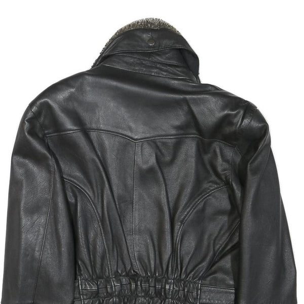 Womens Black Leather Jacket S Zip Faux Shearling Collar Classic Biker Outerwear