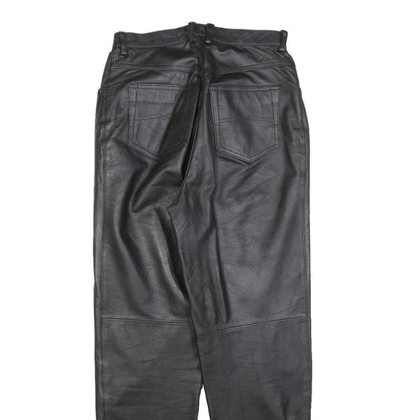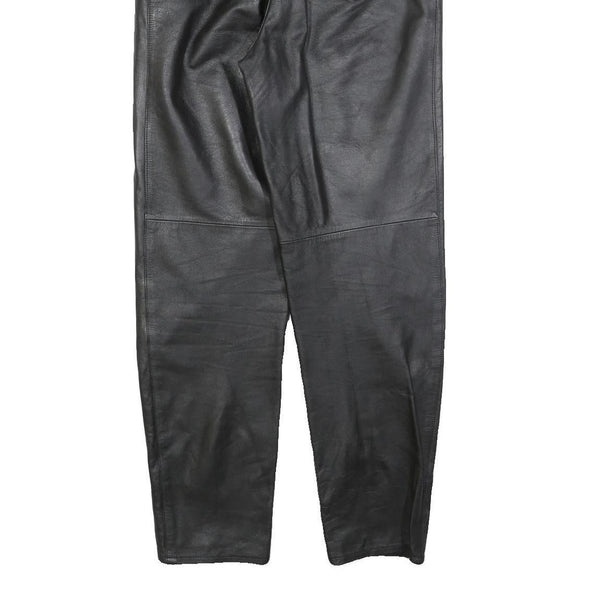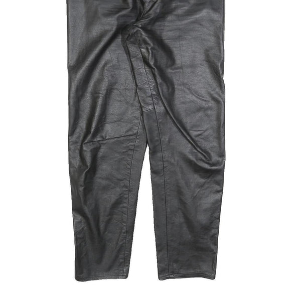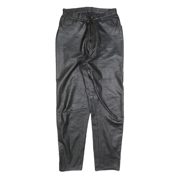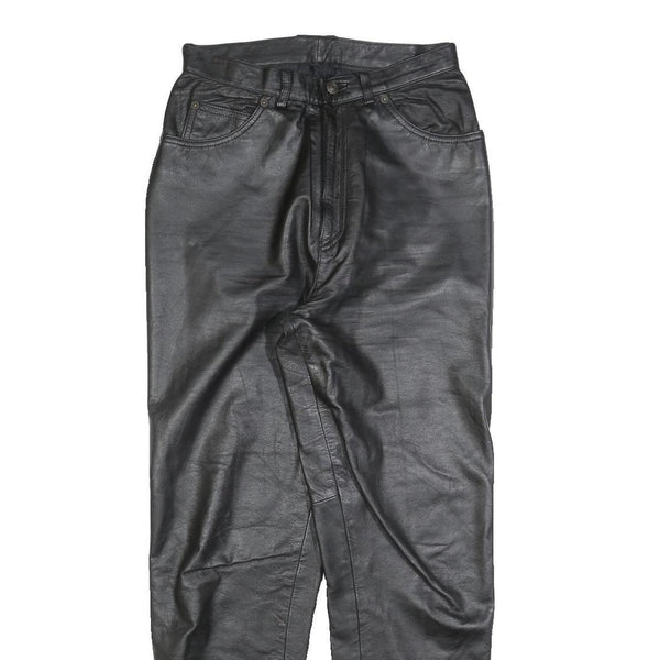 Womens Black Leather Regular Fit Trousers W28 L30 Zip Closure Stylish Pocketed