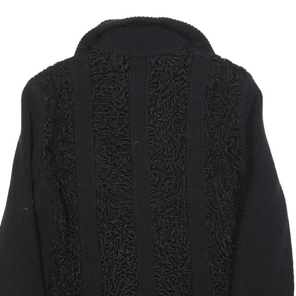 Womens Black Textured Button Jacket M Knit Fine Wool Casual Warm Layer