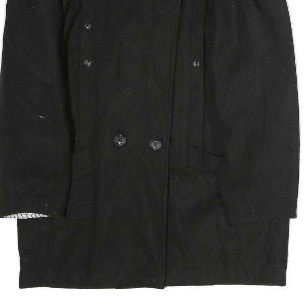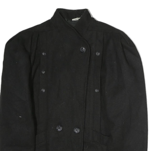 Womens Black Wool Double Breasted Button Jacket L Plain Classic Fit Winter