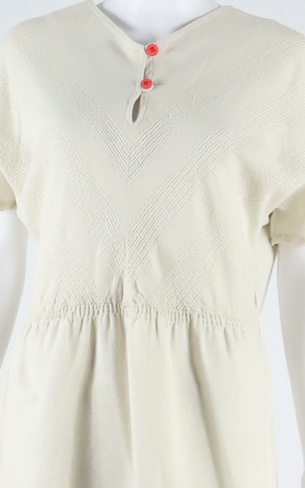 Womens Day Dress Beige 90s Short Sleeve Midi M