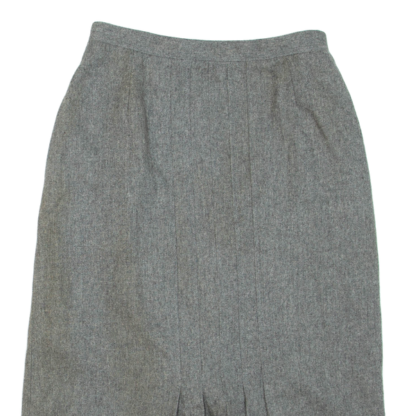 Womens Pleated Skirt Grey Knee Length Wool S