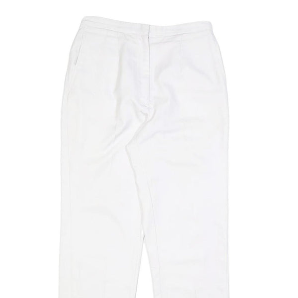 Womens Regular Fit White Cotton Blend Trousers W26 L28 Zip Closure Plain Pattern