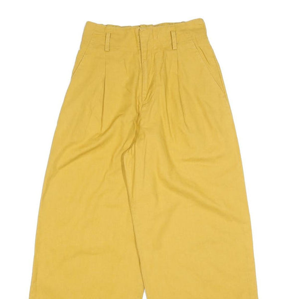 Womens Relaxed Fit Yellow Cotton Blend Wide-Leg Trousers W25 L26 Casual Zip