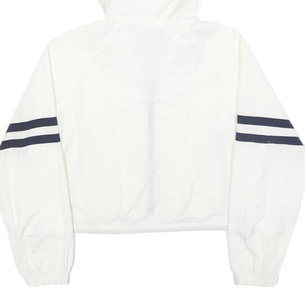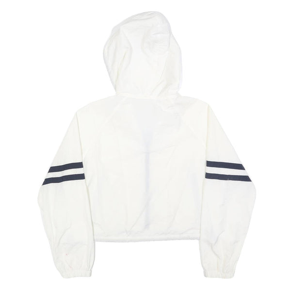 Womens White & Black Striped Hooded Zip Jacket M Polyester Plain Casual