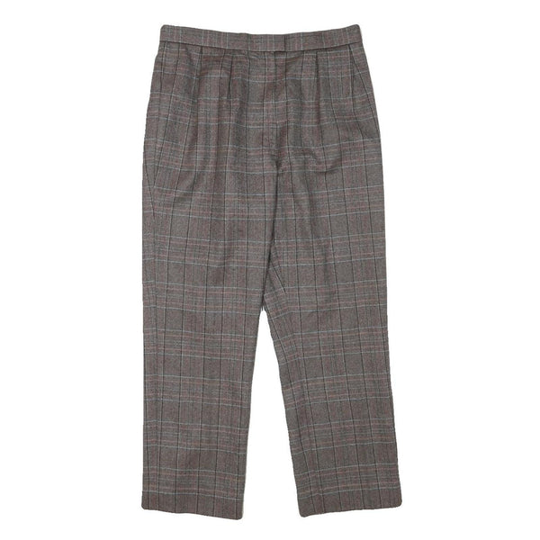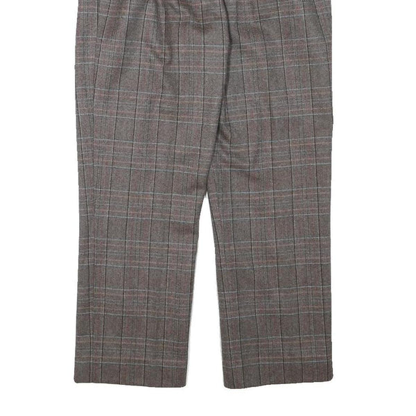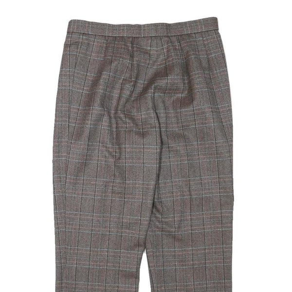 Womens Wool Blend Grey Check Regular Fit Straight Leg Trousers W28 L24 Classic