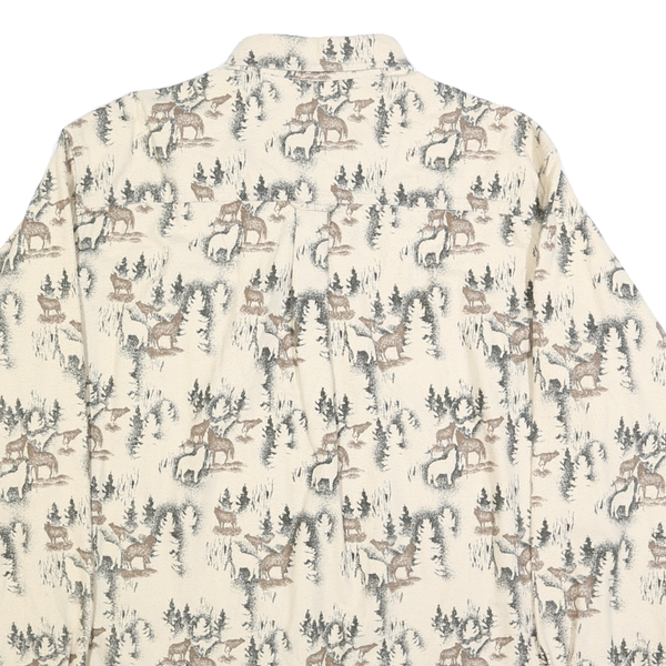 WOOLRICH Mens Cream Brown All Over Print Cotton Shirt XL Button Down Long Sleeve