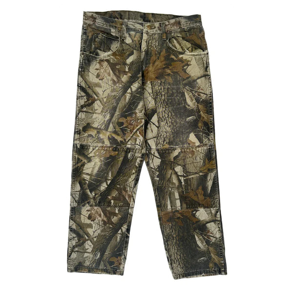 Wrangler Camo Cargo Pants With A 32″ Waist And 29″ Inseam.