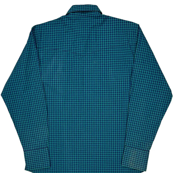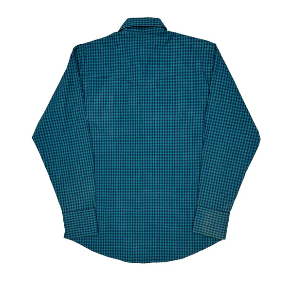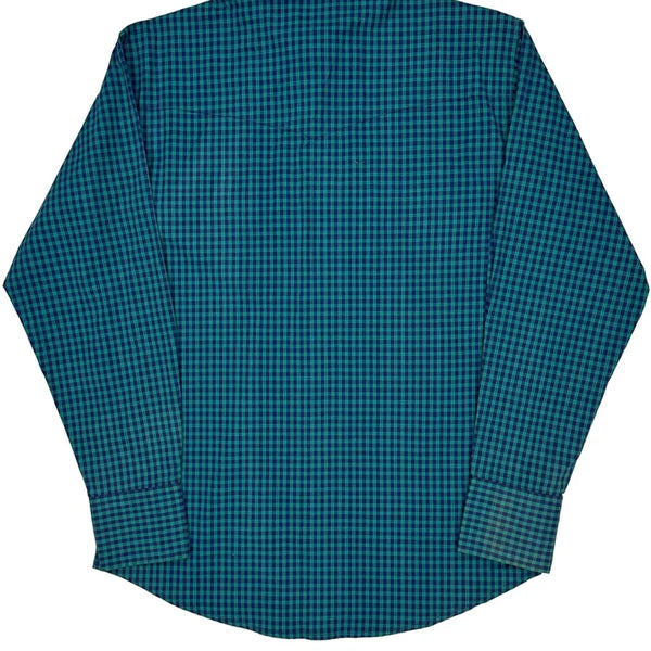 Blue And Green Checked Pattern With Button-Down Collar