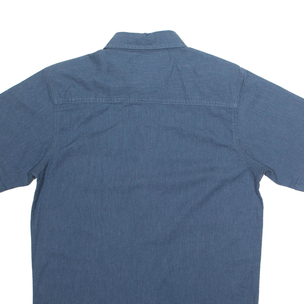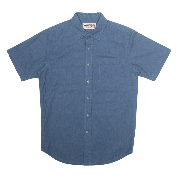 WRANGLER Denim Look Mens Plain Shirt Blue Short Sleeve M