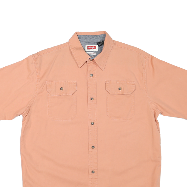 WRANGLER Mens Peach Plain Shirt M Short Sleeve Button Cotton Blend Casual