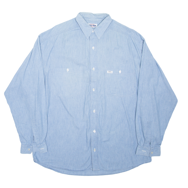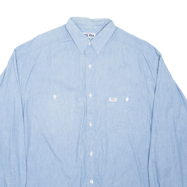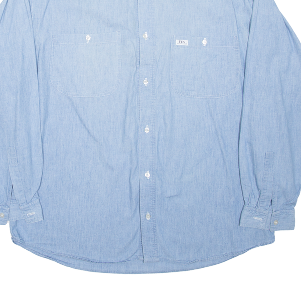 YES USA Mens Plain Shirt Blue Long Sleeve M