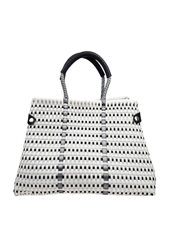 Our Less Pollution Convertible Bag is truly a unique piece of luxurious art. This bag easily transforms to a tote bag adding more spacious to carry all your essentials, including a 16" laptop. It comes with an inside liner and two internal pockets to keep your personal items organized. The handles are our signature style, made from upcycle lather and by hand. This sustainable bag is one-of-a-kind, lightweight and elevates elegance for the modern woman