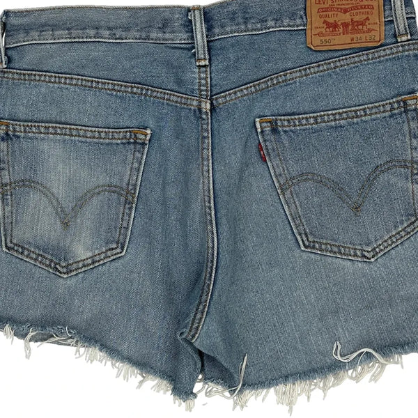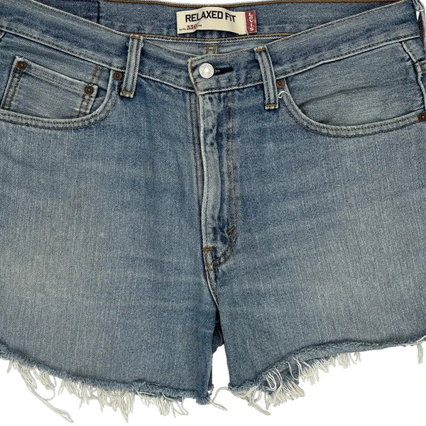 550 Levis Denim Shorts, fit a UK size 14 with a 34″ Waist.