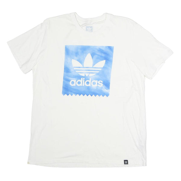 ADIDAS Mens White Blue Graphic T-Shirt XL Short Sleeve Crew Neck Cotton Casual