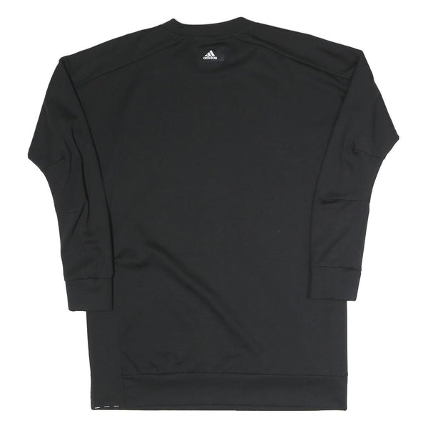 This Adidas womens sweatshirt is crafted in a sleek black colour, featuring a clean and minimalist design. The iconic Adidas logo is subtly embroidered on the rear of the neck area, lending understated brand recognition. The crew neck collar provides a classic sporty look while offering comfortable wear.