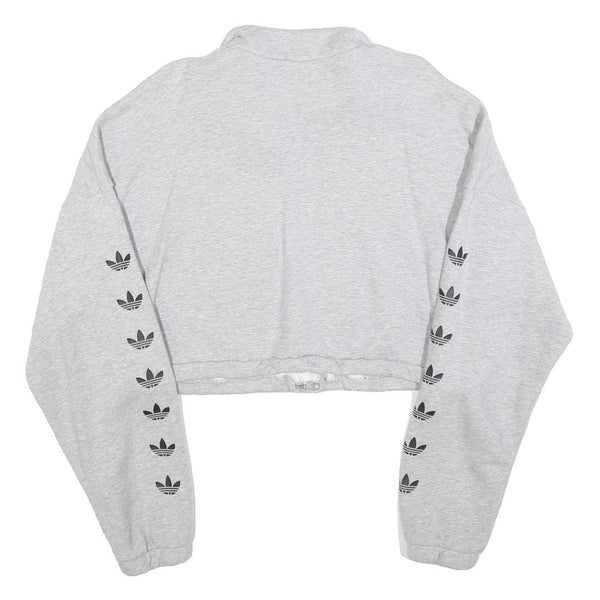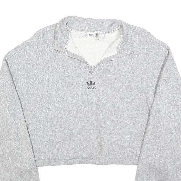 ADIDAS Womens Grey Cotton Blend Sweatshirt Crop Half Zip UK 16 Trefoil Logo
