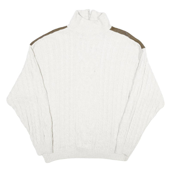 ALPENLAND Mens White & Brown Patterned Jumper Roll Neck Cable Knit L Wool Blend