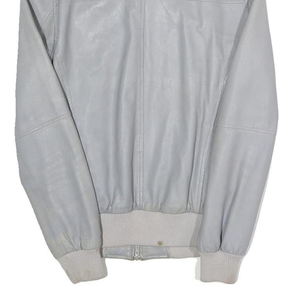 ANTHONY MORATO Mens Grey Leather Jacket S Leather Bomber Zip Closure
