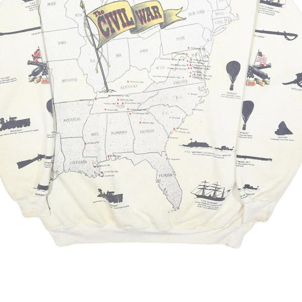 ART UNLIMITED Mens White Civil War Map Printed Crew Neck 2XL Sweatshirt