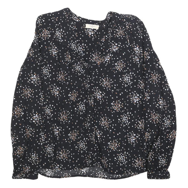 BA&SH Womens Black Floral Print Blouse Long Sleeve Round Neck M Elegant Top