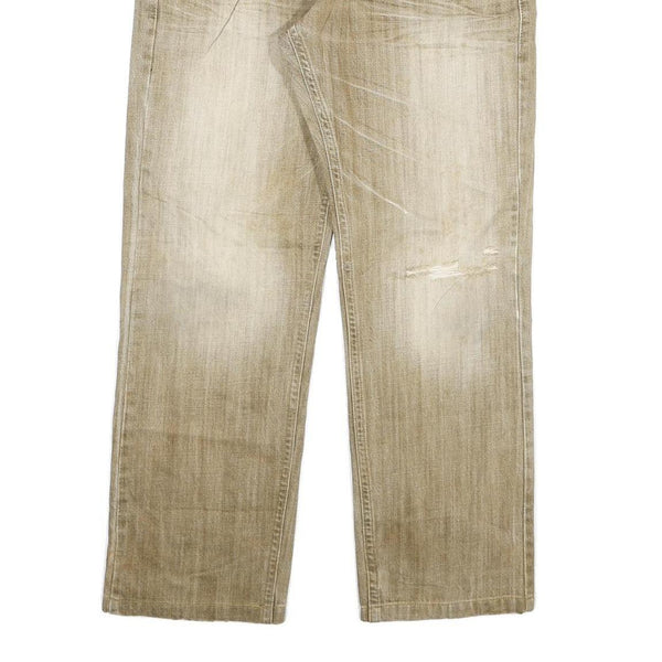 BANDYBUL Mens Jeans Beige Regular Straight Denim Light W35 L29 Cotton Blend Zip