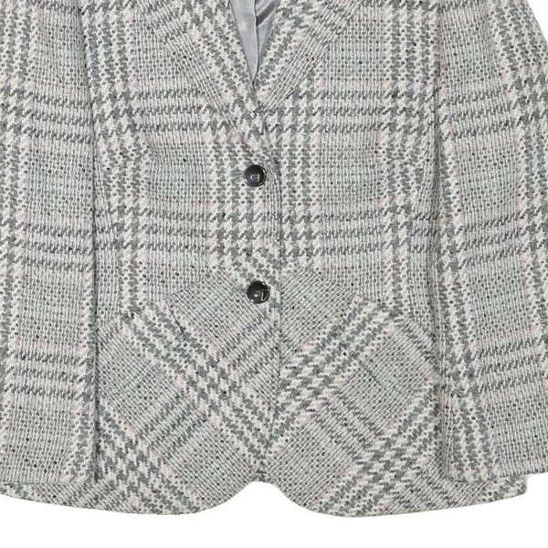 BETTY BARCLAY Womens Grey Check Button Jacket S Wool Blend Tailored Elegant