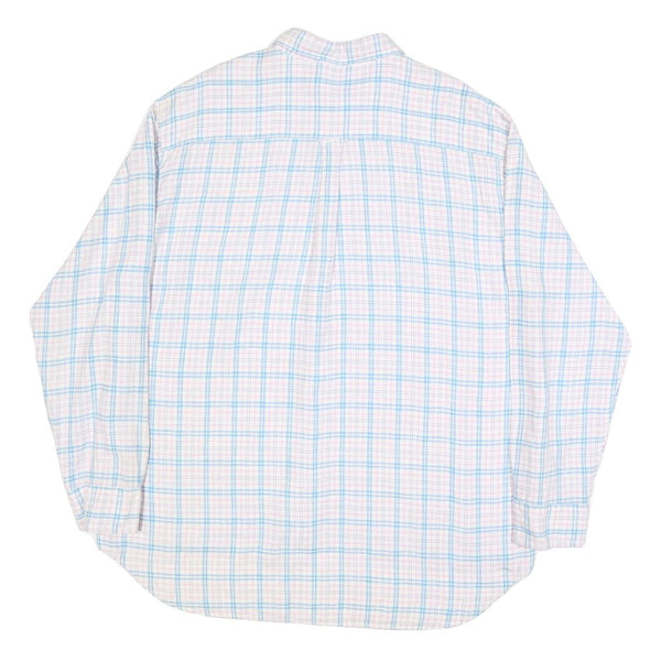 BODER Mens White & Blue Check Shirt XL Linen Casual Lightweight