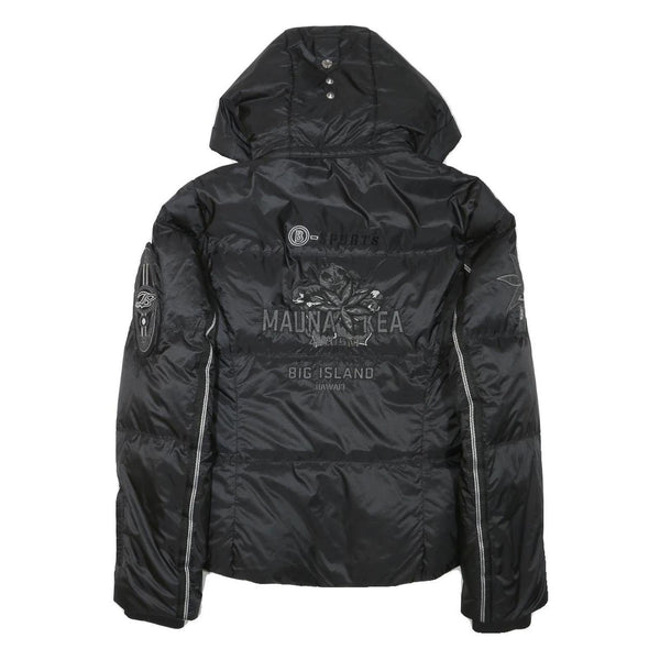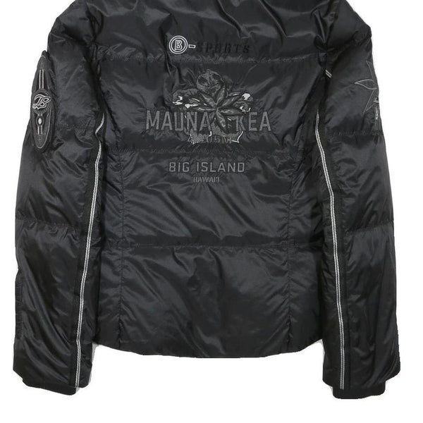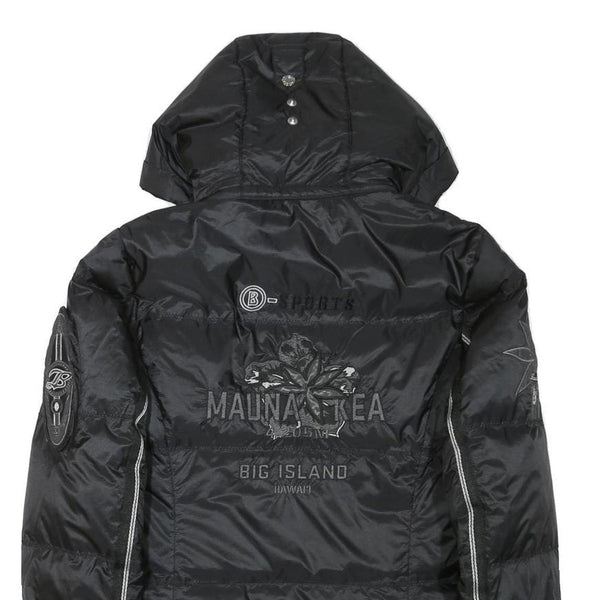 Designed with a padded puffer style, this jacket offers warmth and a classic fit that sits at the hips. Embroidered detailing on the back includes "MAUNA KEA Big Island Hawaii" text and B-Sports branding, giving it an authentic and unique character. It is perfect for casual outdoor wear or winter layering.