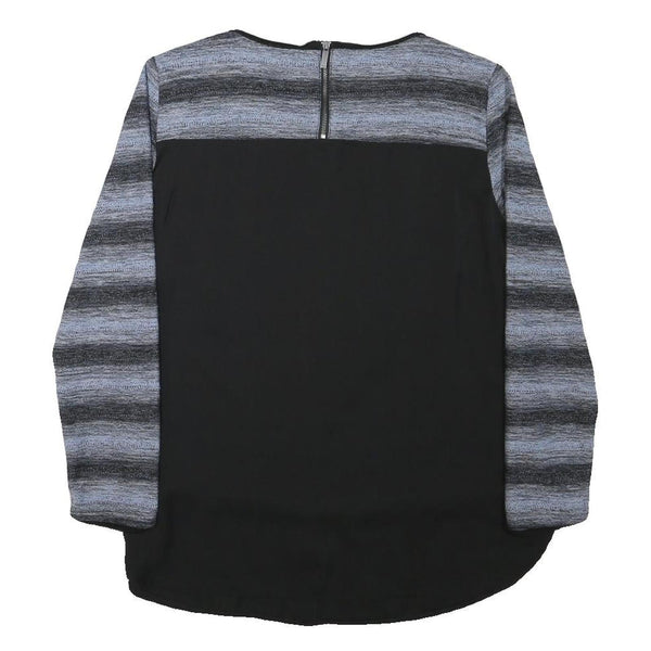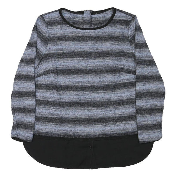 BONITA Womens Grey & Black Striped Pattern Cotton Blend Jumper Round Neck Basic