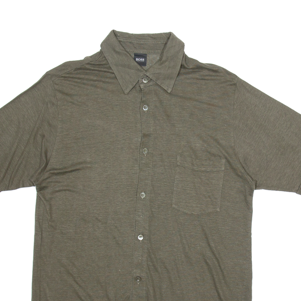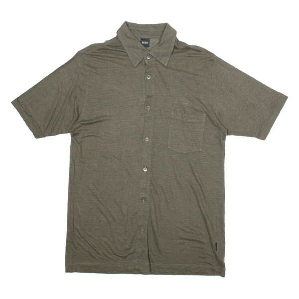 BOSS Mens Plain Shirt Brown Linen M