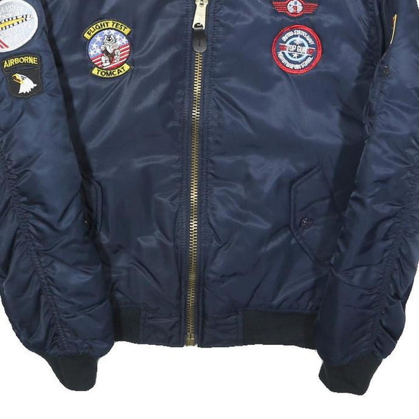 Boys Navy Flight Test Top Gun Patch Bomber Jacket 12Y Polyester Blend Zip