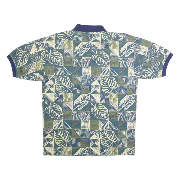 BUGLE BOY Mens Polo Shirt Green 90s Crazy Pattern M